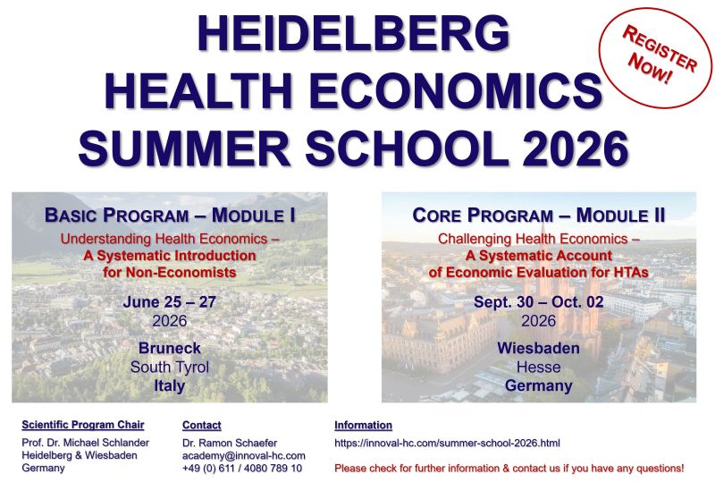The upcoming Heidelberg Health Economics Summer School, an interactive, high-level program offered by InnoValHC under the auspices of the Ruprecht-Karls-University Heidelberg, will be a unique opportunity in 2026 for an in-depth exchange with international thought leaders in the theory, practice, and evolution of using health economic evaluations to inform health technology assessments (HTAs).